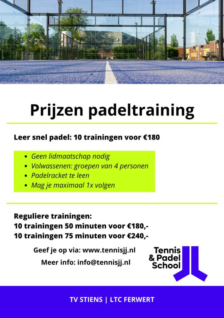 Na de zomervakantie proberen we ook trainingen te organiseren voor zowel tennis als padel, de voorbereidingen zijn in volle gang en nadere informatie volgt nog.