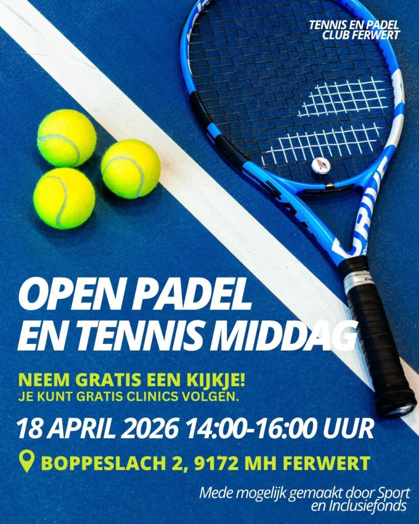 Op 18 april willen we een open tennis en padel middag organiseren waar iedereen kan kennismaken met tennis en padel. Je bent welkom vanaf 14:00 uur – 16:00 uur.